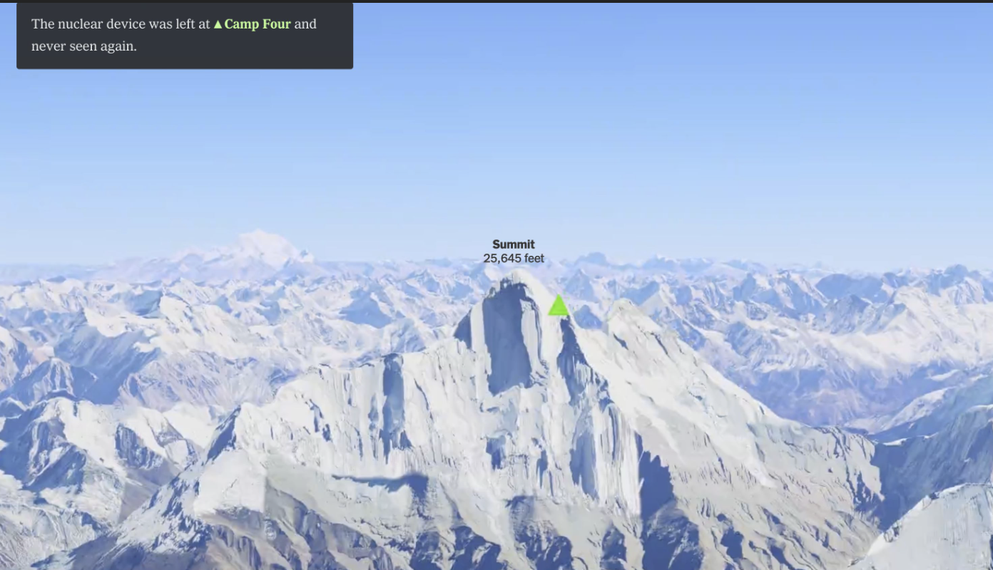 登山者们把中情局的装备藏在冰架上后,迅速撤下山去,留下了一个核装置,里面含有的钚几乎相当于长崎原子弹所用钚总量的三分之一。